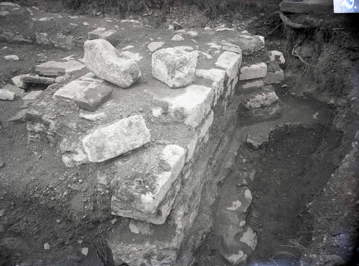 Album sammanställt av Manne Hofrén. Bilderna visar utgrävningarna i Kalmar gamla stad, Gamla Stadskyrkan, 1923-1924. Alla bilder tagna av MH.