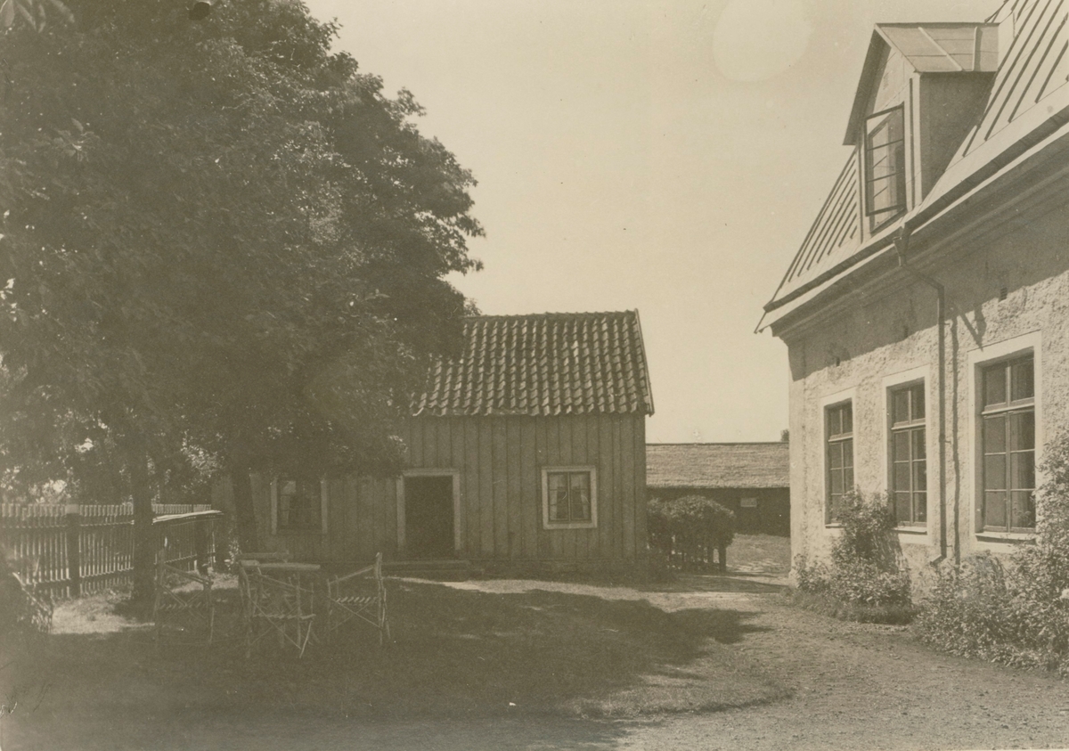 Mangården och den södra flygeln. Flygeln utgör bryggarstuga, är byggd i skift och panelad samt målad gul. Till höger en bryggstuga med stengolv och till vänster en kammare eller bod.