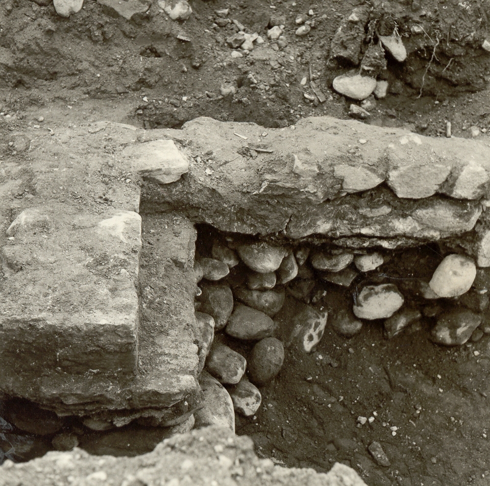 En arkeologisk undersökning på Kalmar Slott. Förborgen, sydvästra hörnet. Trappan i murhörnet, från norr.