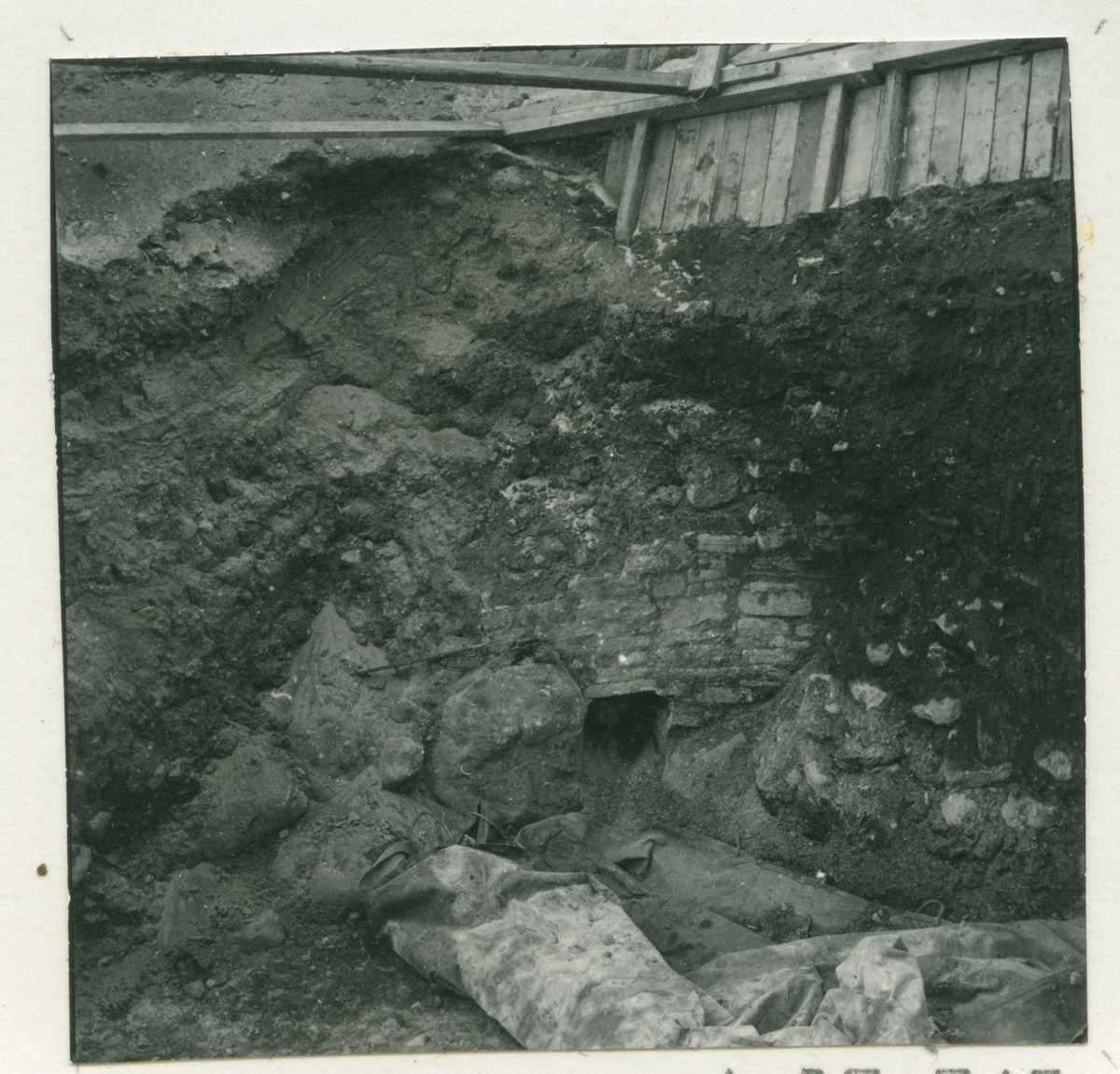 Förborgen på Kalmar slott. Västra vallen från öster. Från restaureringsarbetet vintern 1967-68