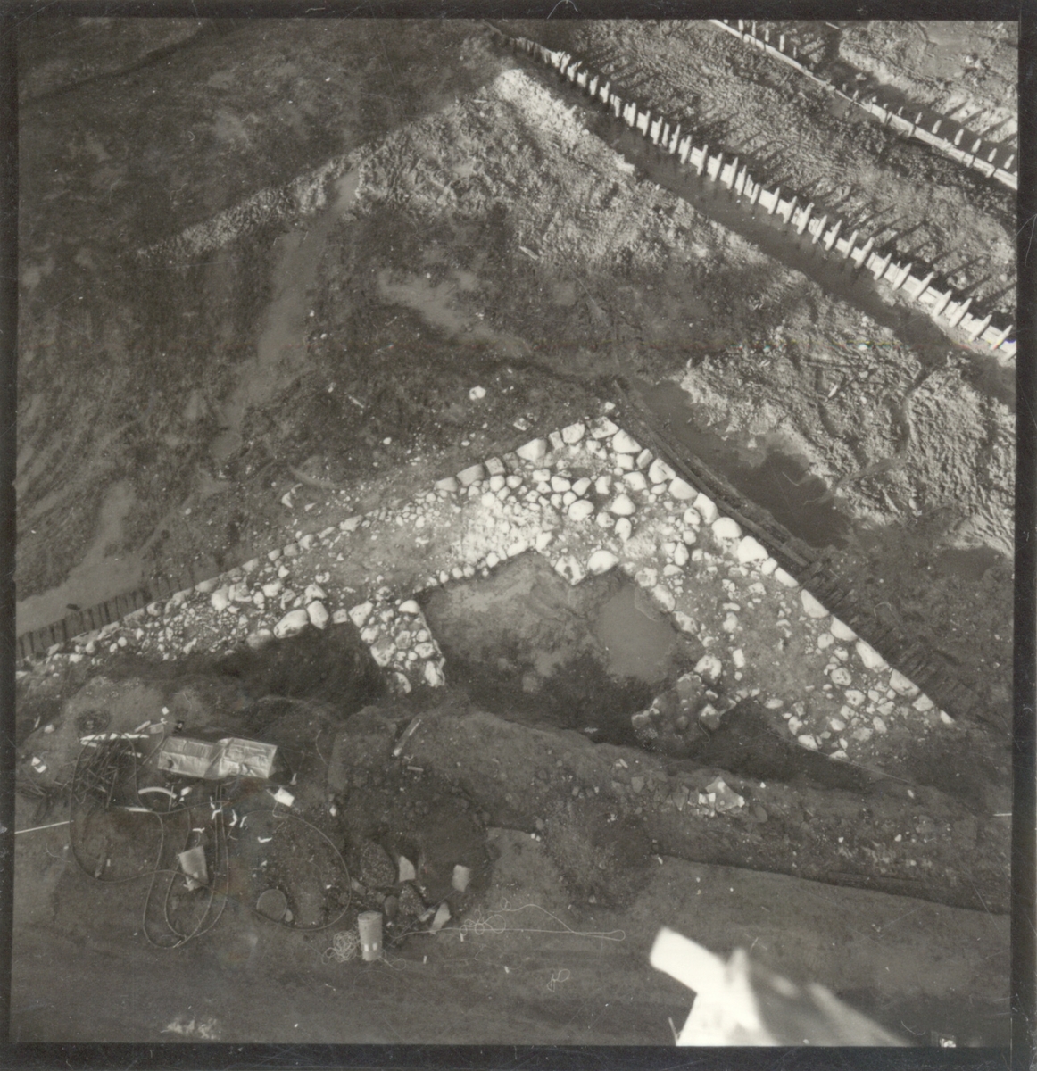 Arkeologisk utgrävning inför byggandet av nya landstingshuset. Bastionen Carolus Nonus. Bastionen och plankverkets östra delar från ovan. Foto från nordost.