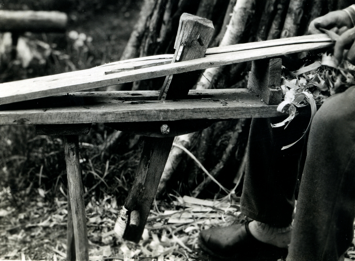 Korgmakaren Johan Ek på torpet Skogstorp utanför Orrefors tillverkar vidjor som ska användas till korgflätning.