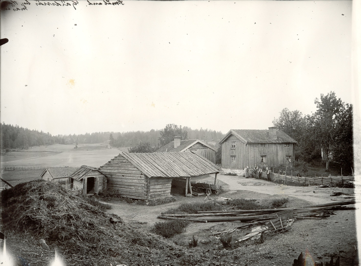 Motiv från byn Gärdsnäs, med bostadshus och ekonomibyggnader.