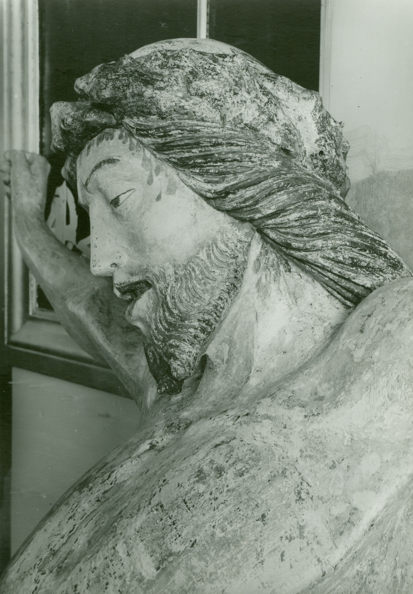 Detalj av triumfkrucifix i Högby kyrka efter framtagningen.