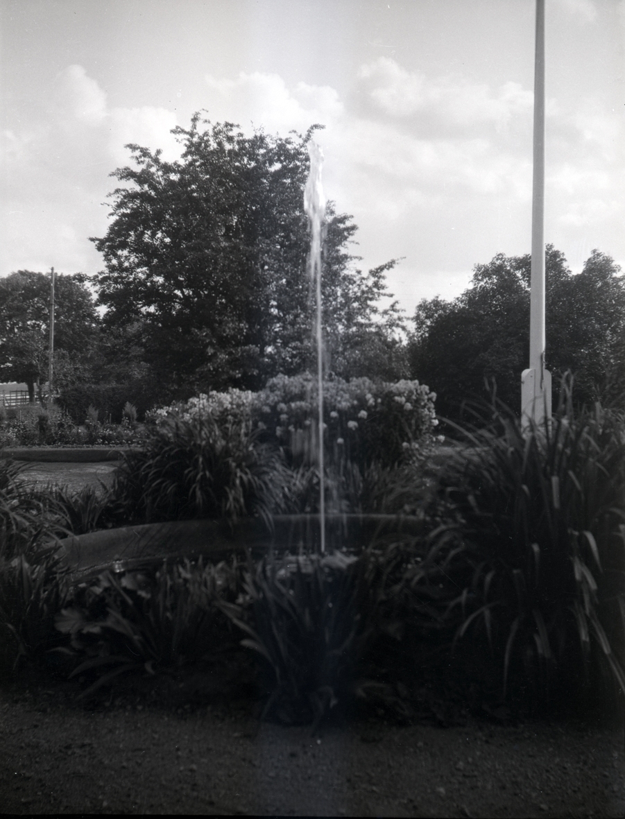 Fontänen och en flaggstång på Tuna gård.