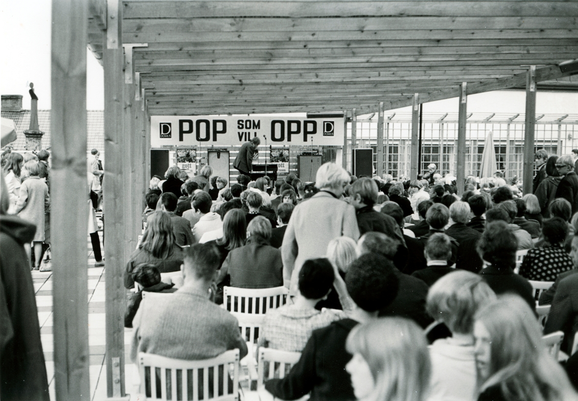 "Pop som vill opp", musikevenemang på takterassen av Domusvaruhuset i kvarteret Åldermannen, Kalmar.