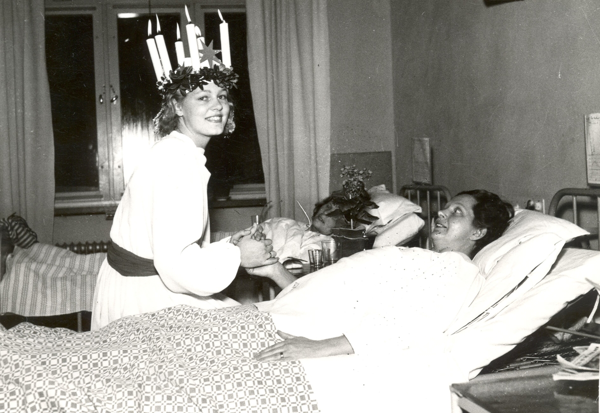 Kalmars Lucia besöker Kalmar Lasarett 1940-talet.