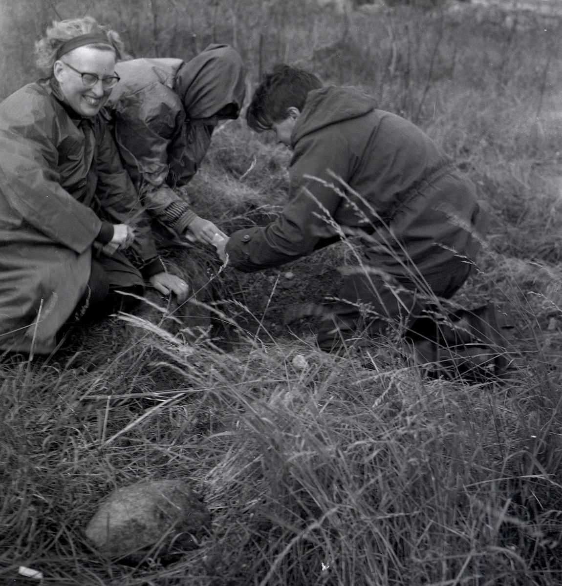 Antikvarie Ulf Erik Hagberg och dr. Ragnhild Boström gör en arkeologisk undersökning på Kåreholm. Kåreholm är en ö intill Kårehamn.