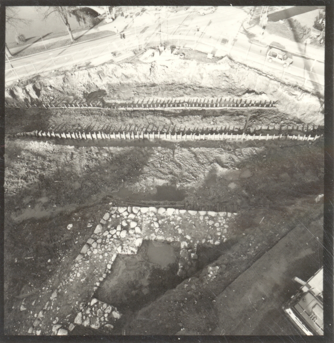 Arkeologisk utgrävning inför byggandet av nya landstingshuset. Bastionen Carolus Nonus. Bastionen och Plankverkets östra delar. Foto från söder.