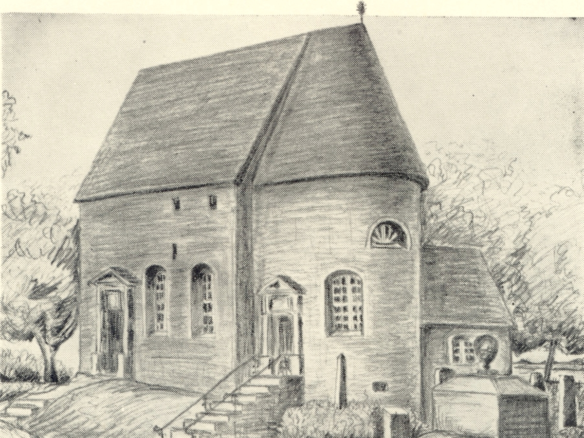 Teckning föreställande Kläckeberga kyrka.