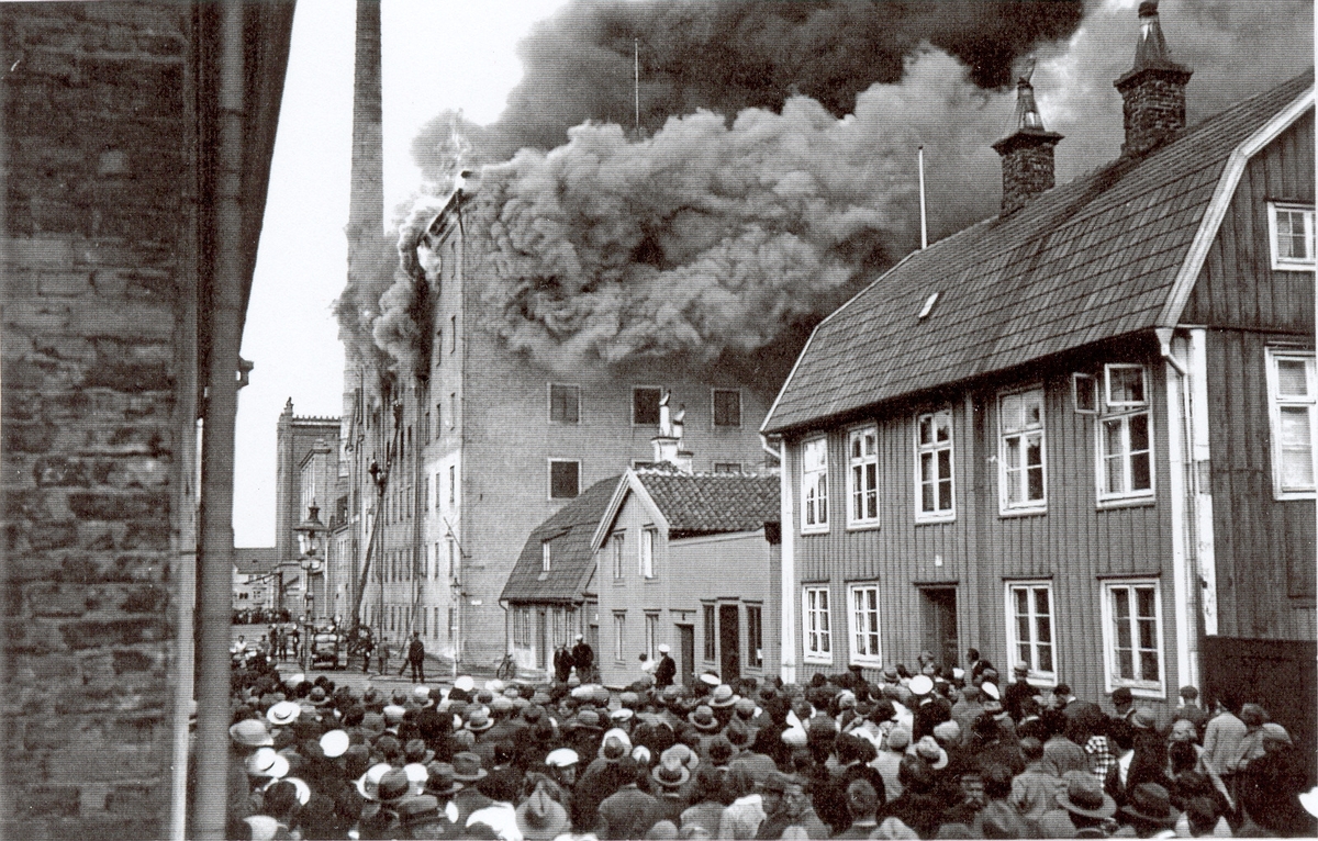 Ångkvarnsbranden i juli månad 1935. Denna bild spreds i pressen och kom att symbolisera katastrofen.