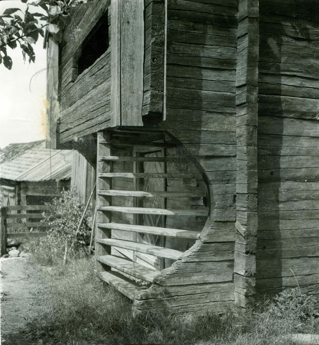 Utvändig trappa i lofthus i Bjälebo.