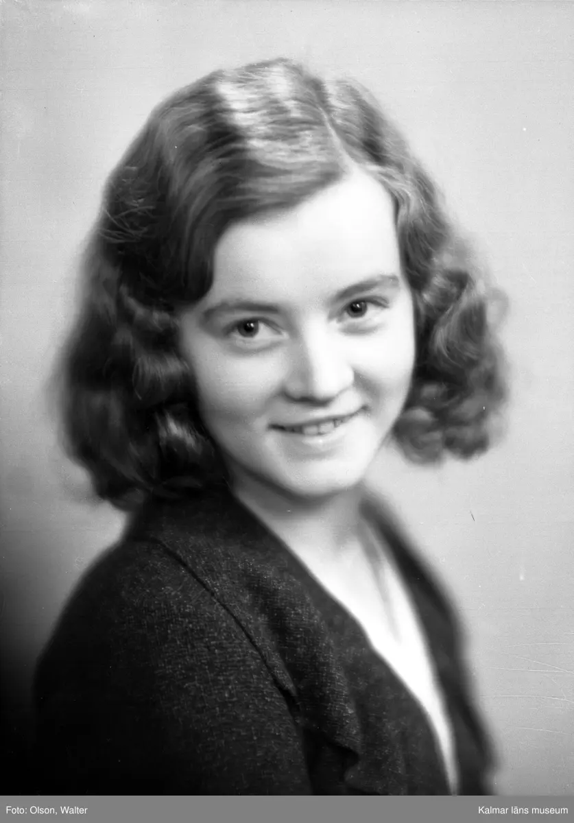 Ateljébild på en kvinna. Enligt Walter Olsons journal är bilden beställd av Hagar Johnsén ifrån Tallhagsvägen 37 i Kalmar.