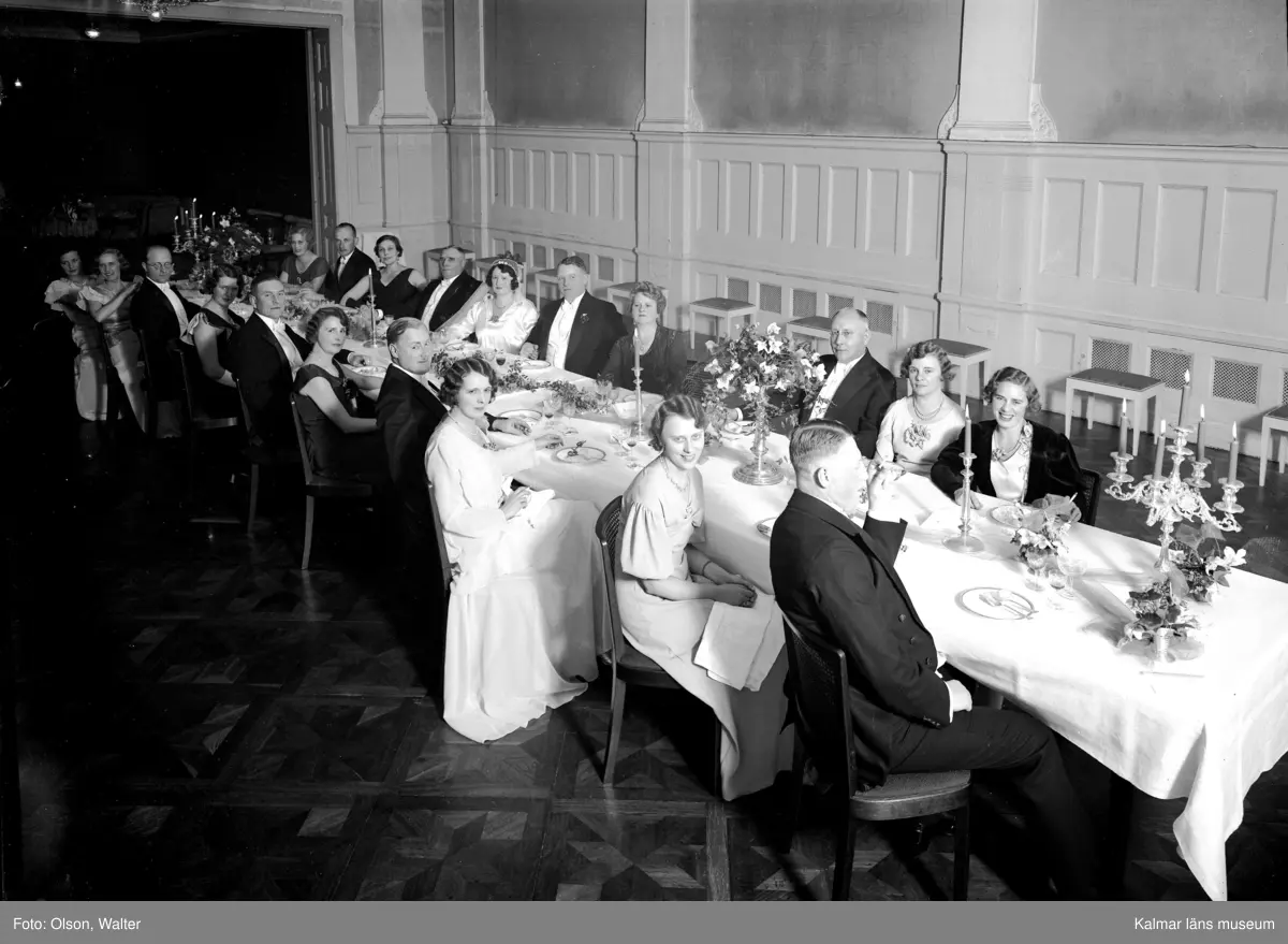 Bild på folk i en festsal vid en bröllopsfest.