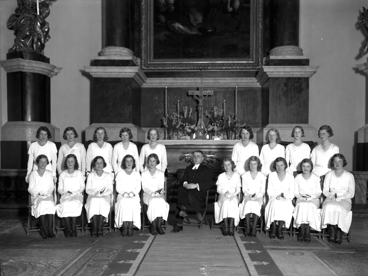 Präst och konfirmander ifrån Fortsättningsskolan i Kalmar domkyrka.