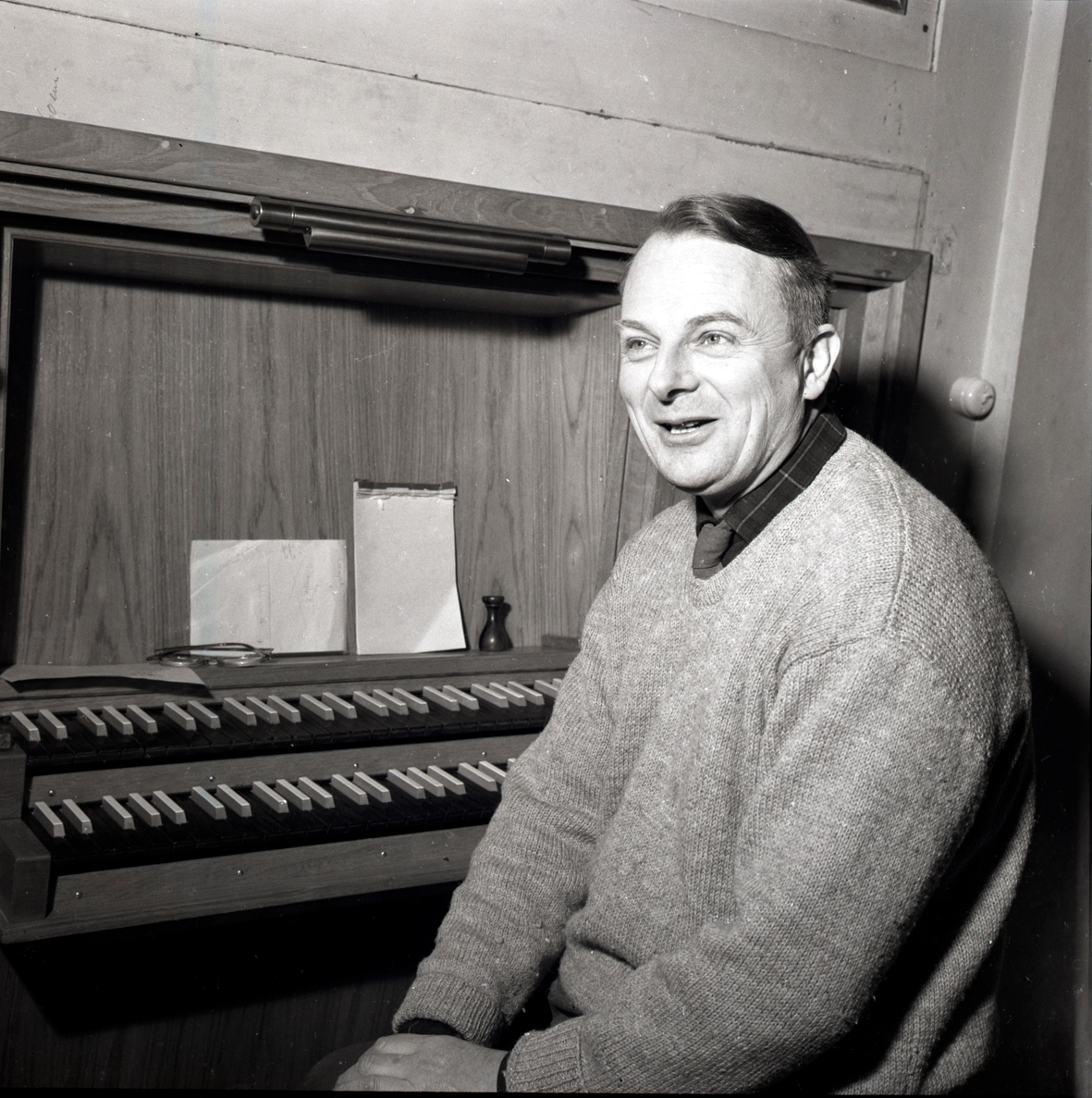 Orgelbyggaren Troels Krohn från Fredriksborg, Hilleröd, vid orgeln.