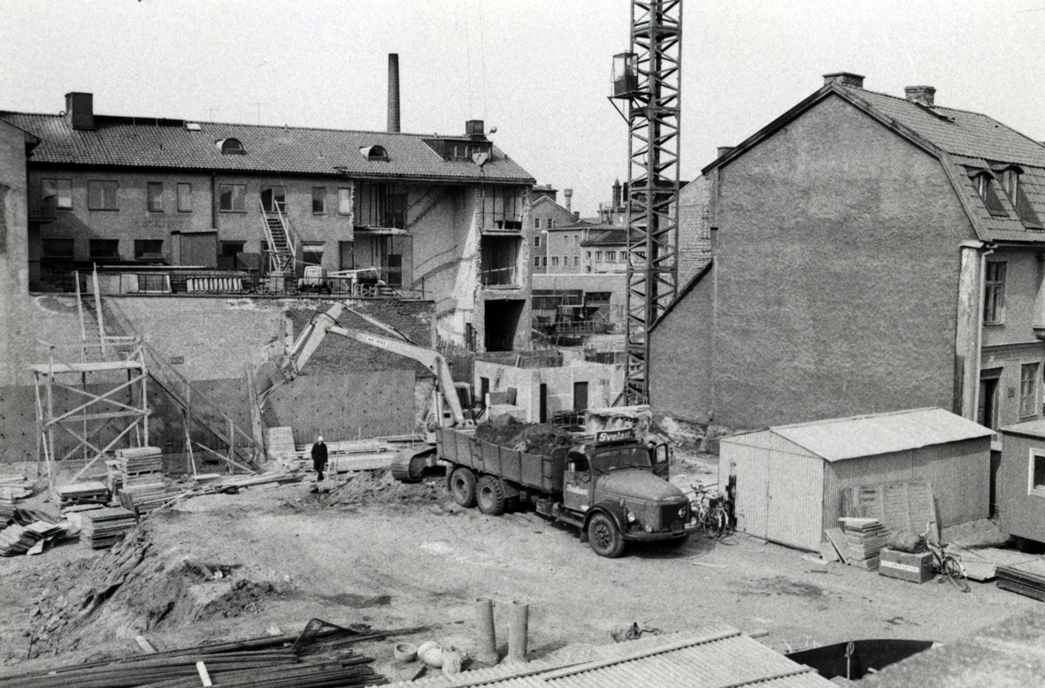 Utbyggnaden av Hotell Witt i kvarteret Krögaren 11, april 1971.