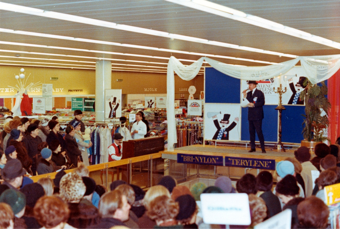 Reklamevenemang på Domus i Kalmar, för terylen och Bri-nylon, 1968.