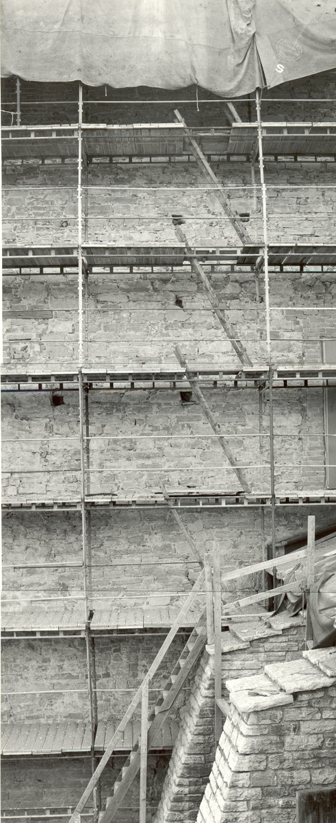 Restaurering av västra fasadens norra del mellan Kungsmakstornet och Kuretornet. Partiet näst närmast Kuretornet.
