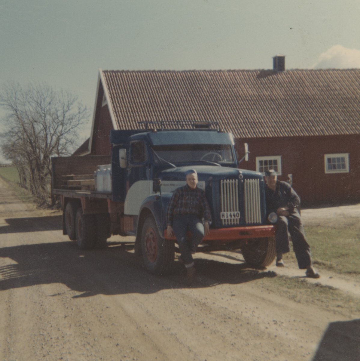 Bröderna Lindström vid sin lastbil i Högsrum, Böhle, Glömminge.