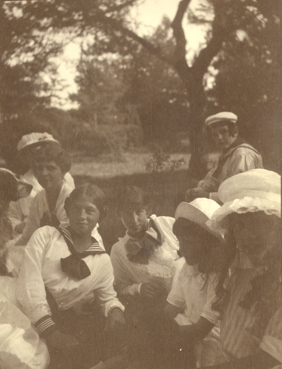 Kvinnor på utflykt vid Le Grands sommarstuga på Jutnabben.