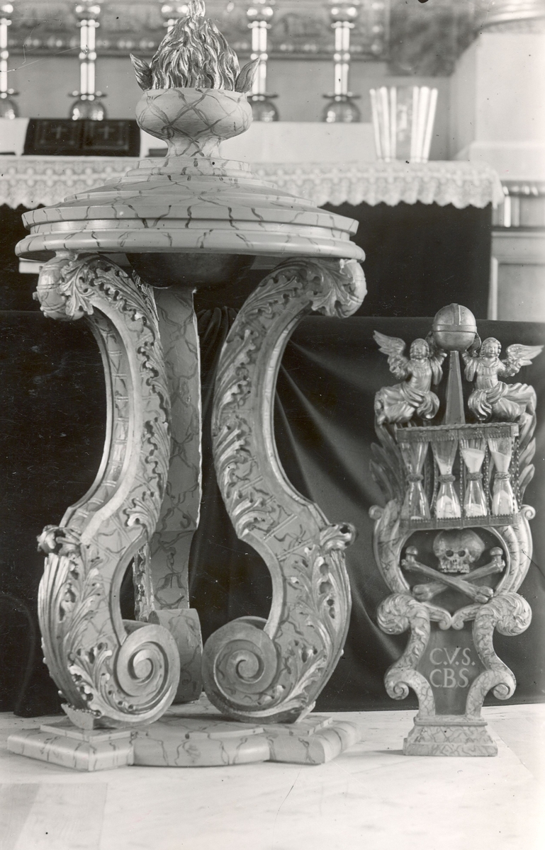Dopfunt, gjord av delar av den gamla predikstolen.
