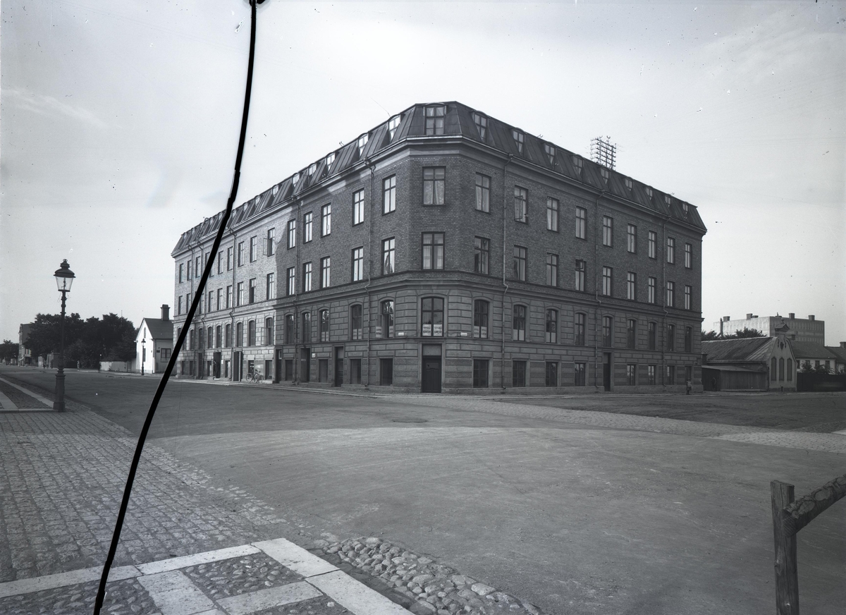Här, i en av hörnvåningarna, låg Livförsäkringsanstalten Tryggs kontor i Kalmar, 1915.