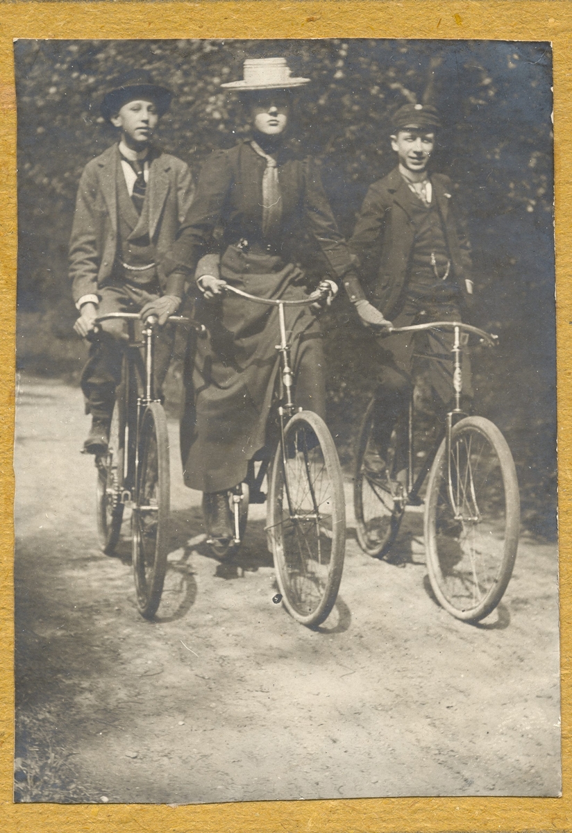 Folke Ibom, Lilli Sahlberg och Adolf till cykel i Alnarp.