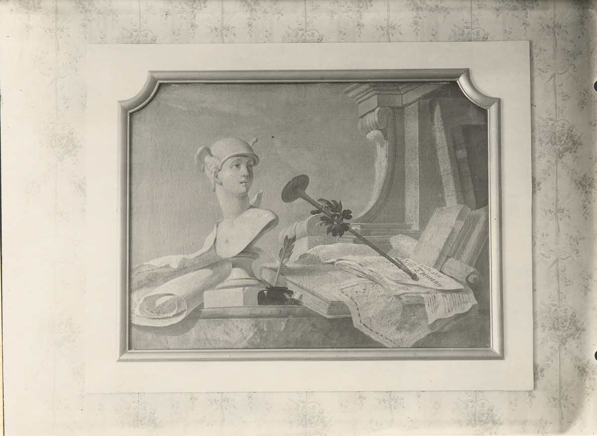 Dörröverstycke i form av en oljemålning på väv i ramverk med förgylld list och vitmålat ramstycke, på Gränsö slott.