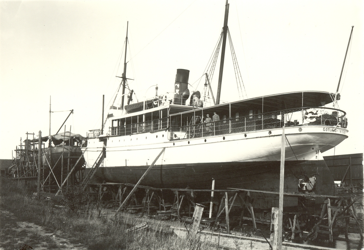 Passagerarfärjan Gotland av Visby reparerades vid Kalmar varv. Trafikerade traden Kalmar- Visby omkring 1930.