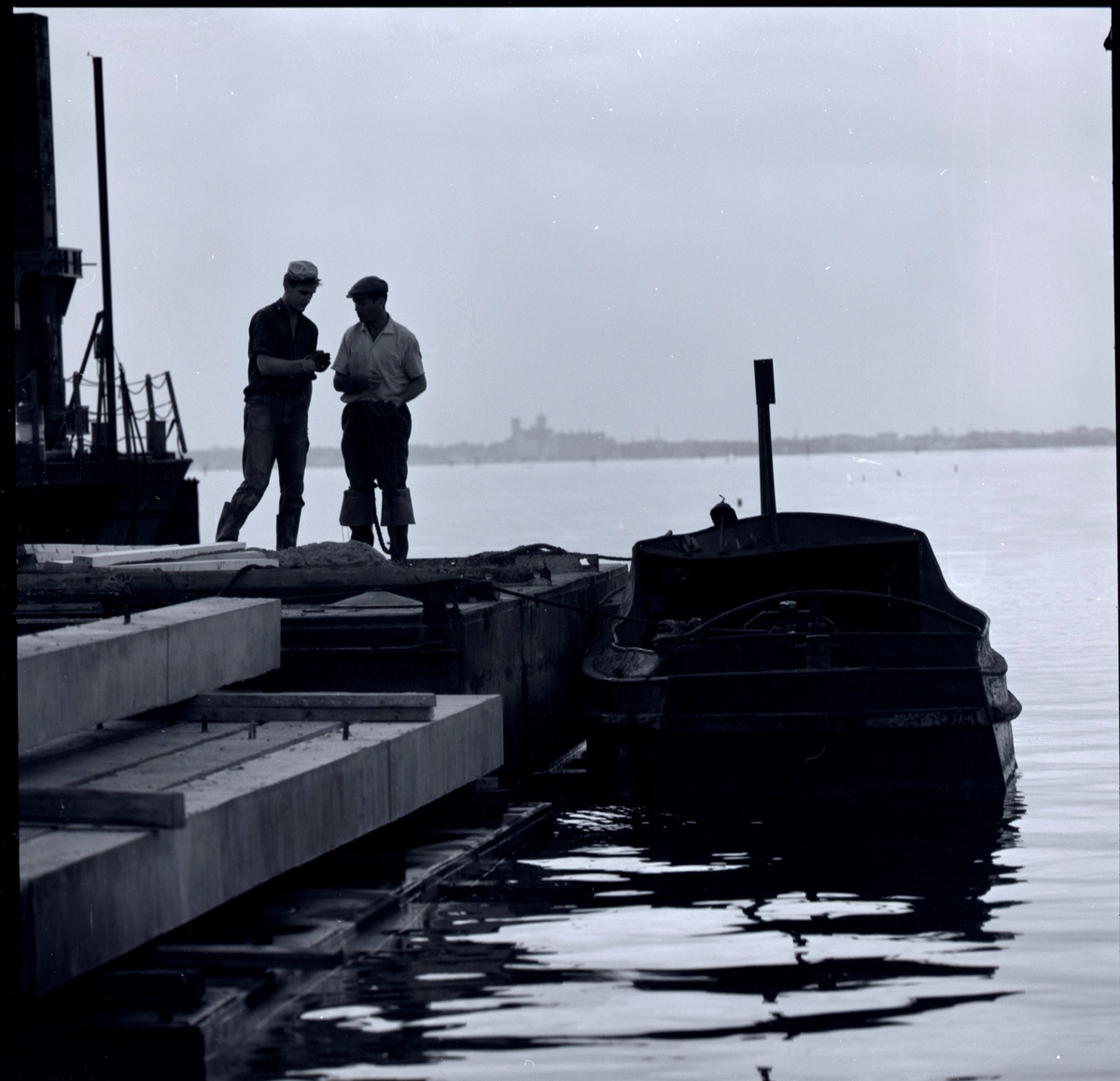 Från byggandet av Ölandsbron. På andra sidan sundet skymtar Kalmar.