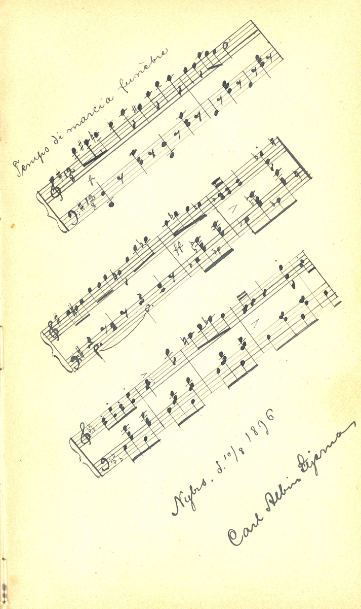 Notblad av Carl Albin Stjerna, Nybro den 10/8 1896, i Lilly Sahlbergs minnesalbum.