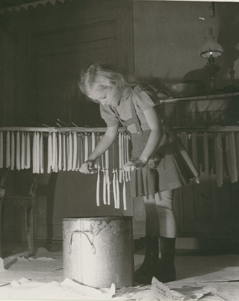 Ljusstöpning på kvarnaslätts hembygdsgård julen 1946