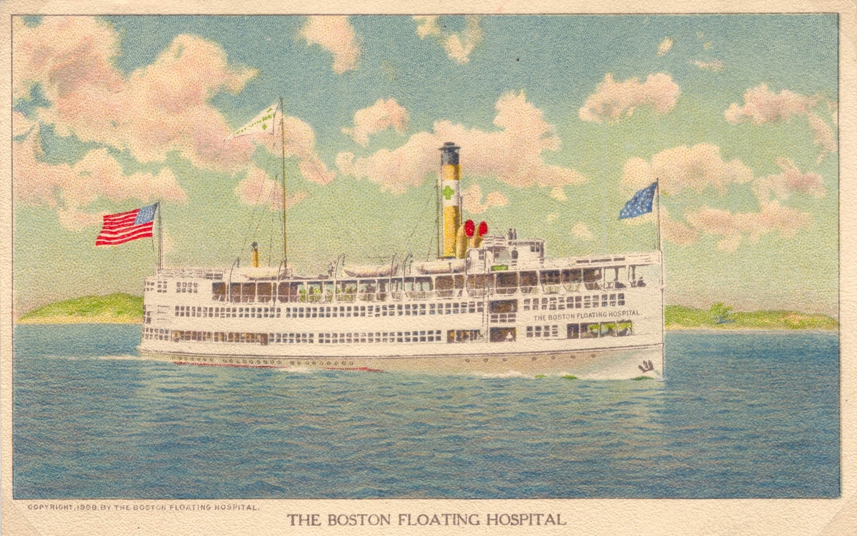 Titel: Bostons Flytande Sjukhus fungerar endast tack vare av välgörenhet av det generösa folket. Det finns, dag som natt, gratis sjukvård, med fördelen av den friska havsluften åt hundratals sjuka bebisar och små barn, under den varma sommaren. Det är ett modernt och välutrustat sjukhus, med sju avdelningar för inlagda patienter och ett stort däck utomhus för dagpatienter och deras mammor.