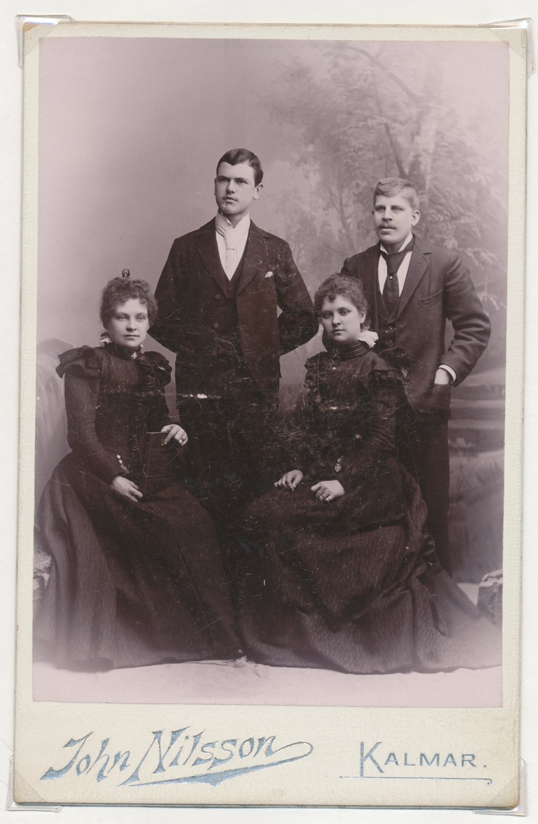 Rudolf Österberg med fru, från vänster: okänd dam, köpman Rudolf Österberg anställd i firman Strömberg & Co (Ludvigs) Österbergs fru, född i Kalmar, vaktmästare Adrian Magnusson, bror till redaktör Frans Hugo Magnusson.
