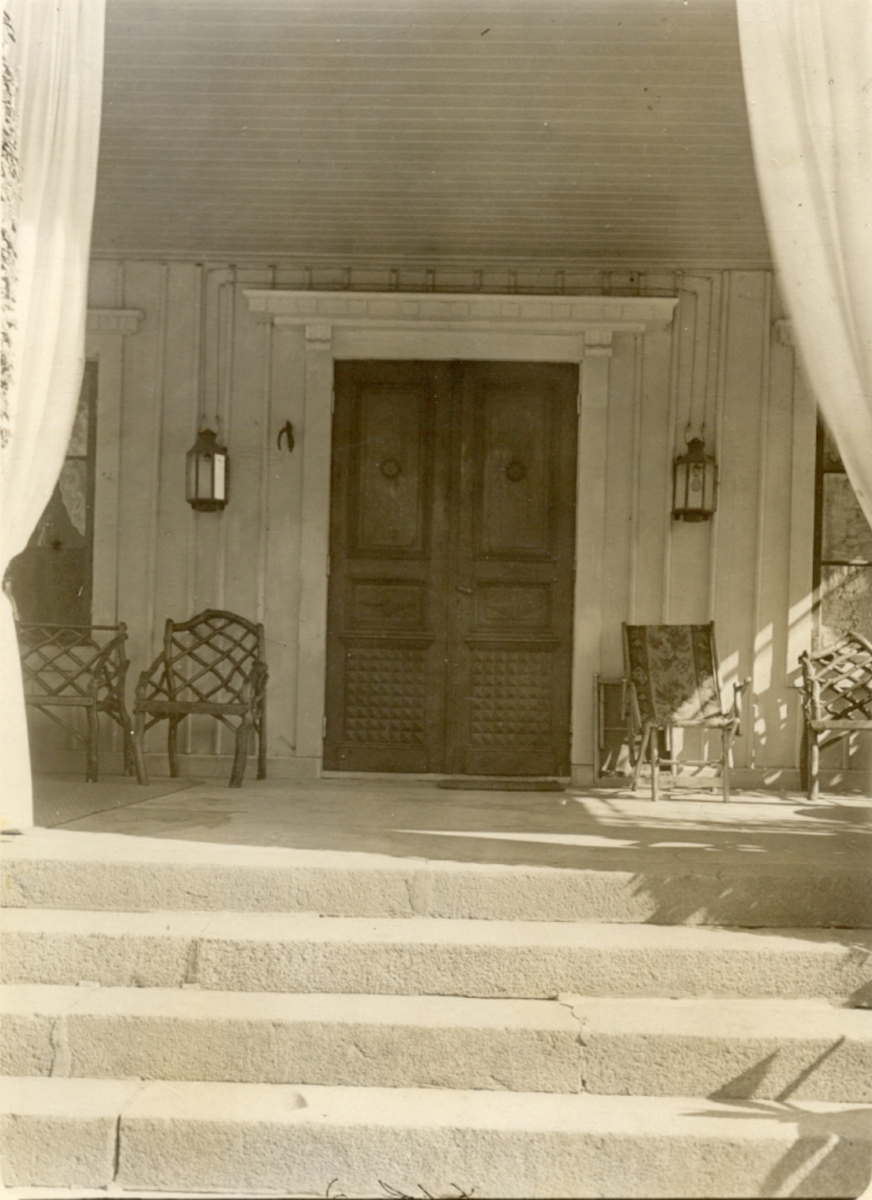 Dörromfattning på huvudbyggnaden. Portklappar av brons, empir. Verandan är inte ursprunglig.