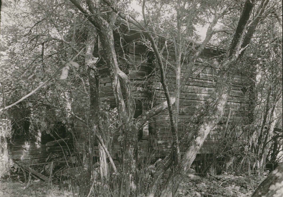 Knuttimrad bod. Längd mellan knutar ca 5,5 m. Bredd mellan knutar ca 3,80 m. Sedd från sydväst.