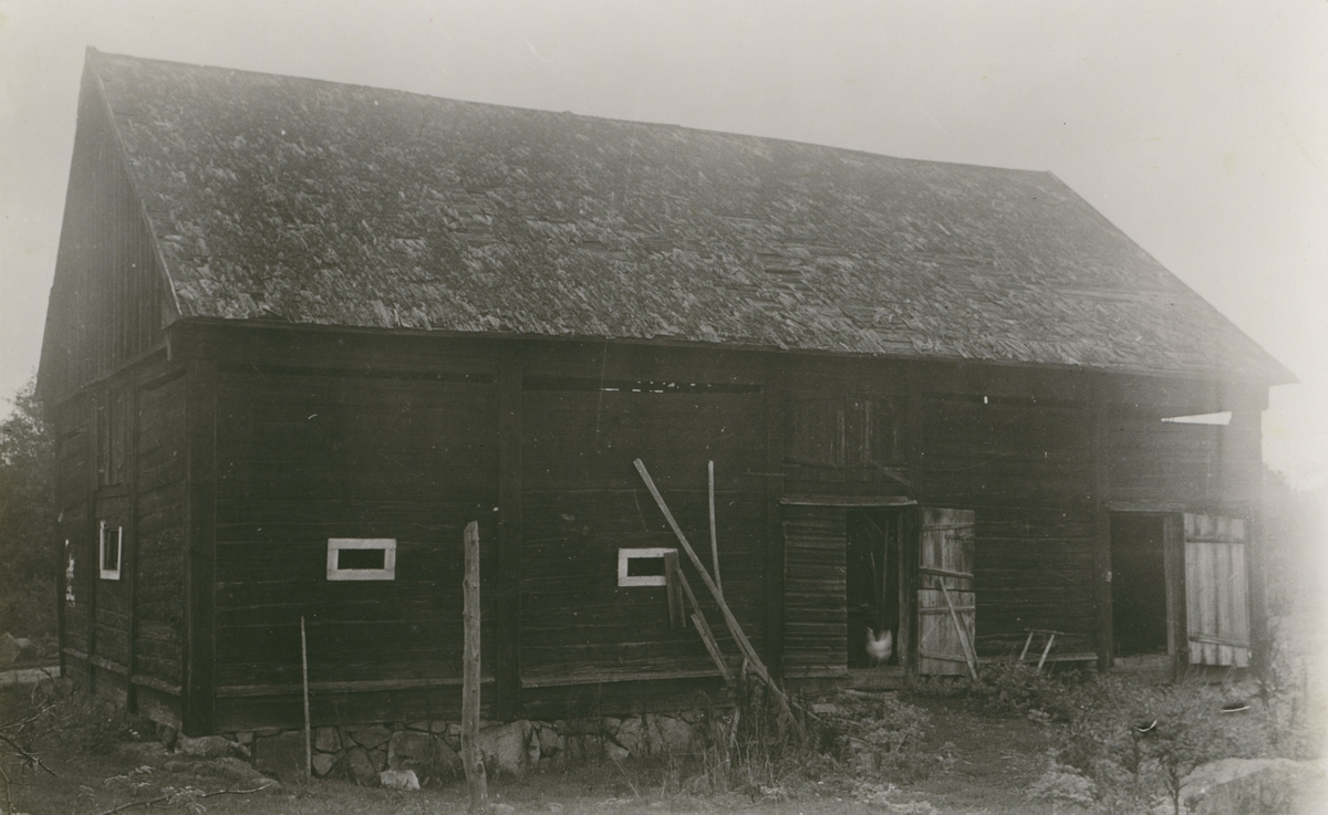 Ladugård, sedemera hönshus. Längd 12,60 m. Bredd 8,20 m. Sedd från sydväst