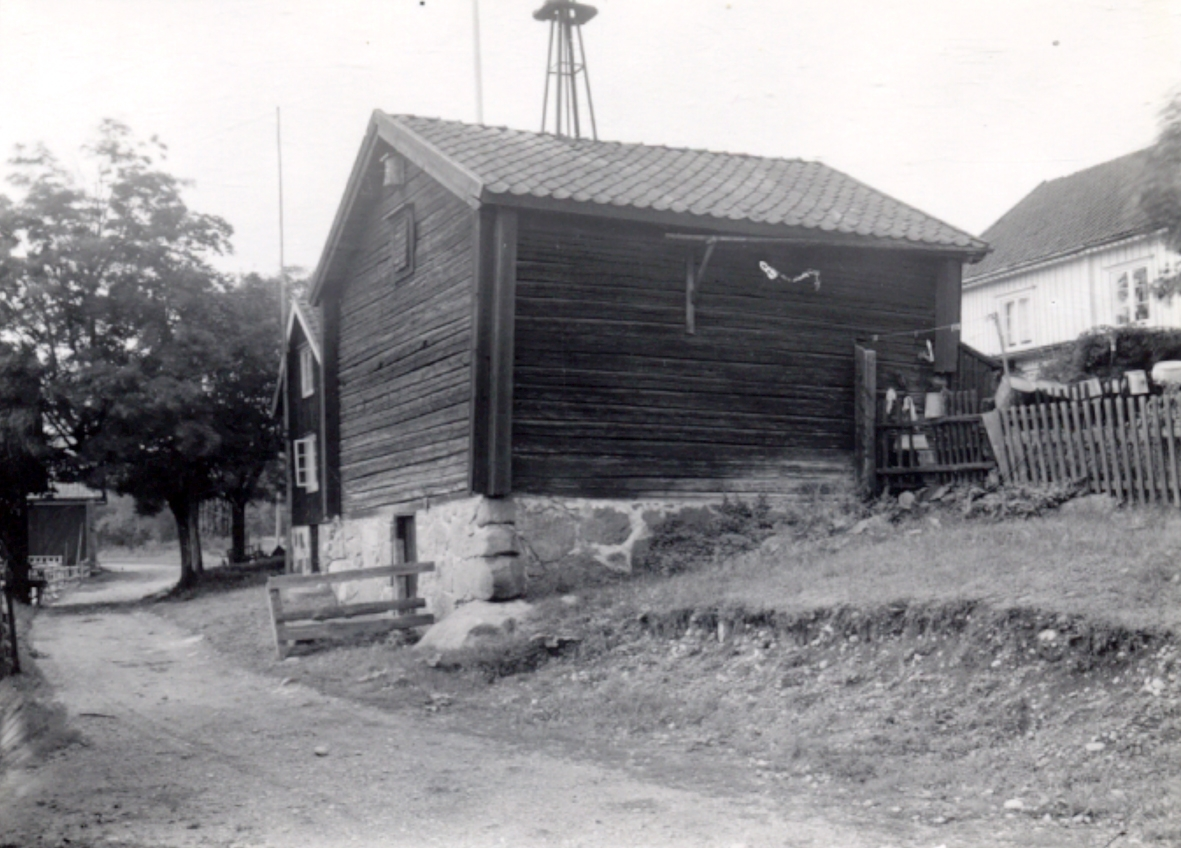 Visthusbod, på taket vinddrivet uppfordringsverk. Längd 6,20 meter, bredd 5 meter. Ägare: Riksdagsman Albert Johansson.