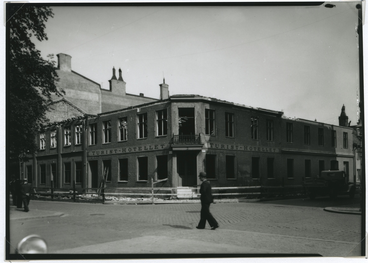Turisthotellet på Larmgatan 6 i Kalmar under rivning 1938.