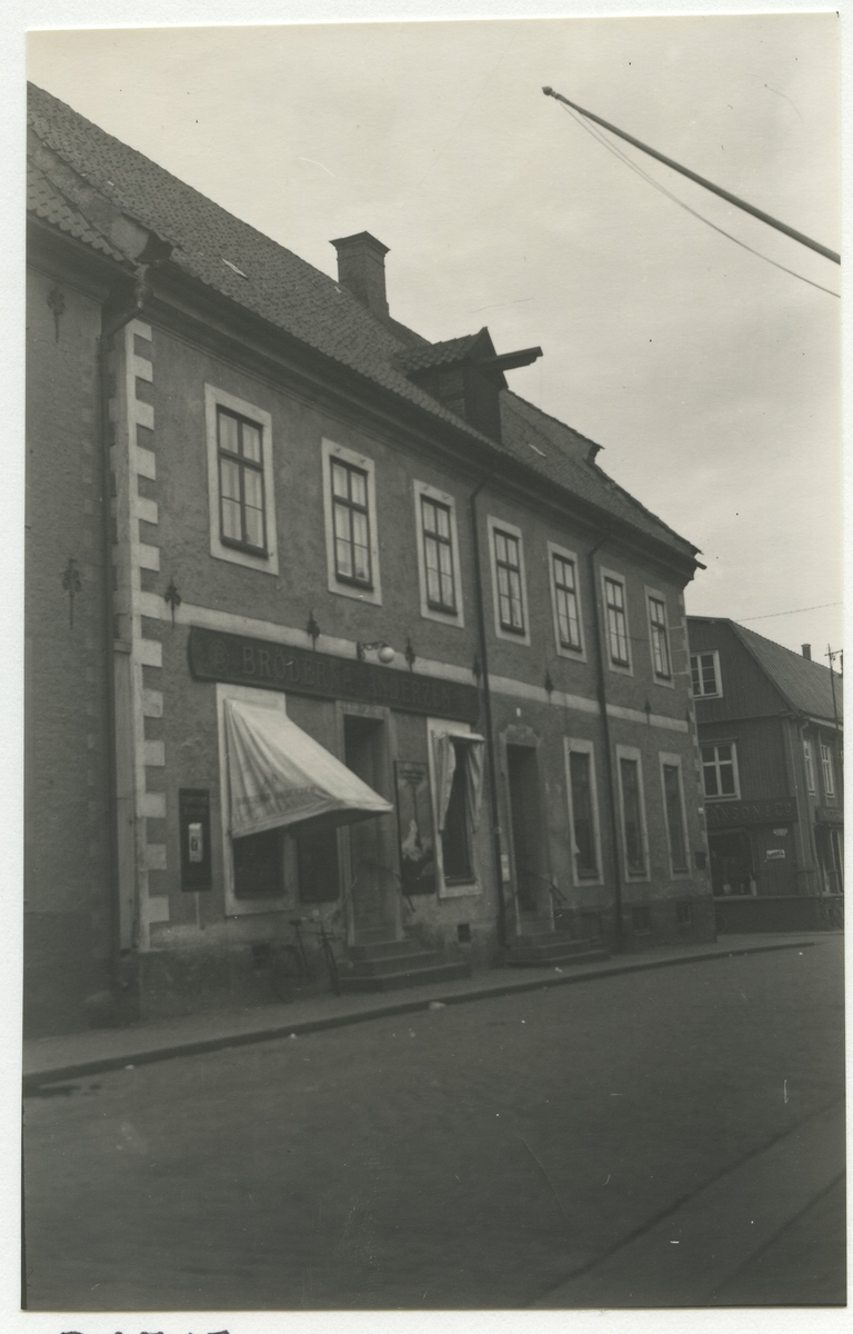 Butiksbyggnad, ursprungligen från 1600-talet, ombyggd efter branden 1765, på Kaggensgatan.