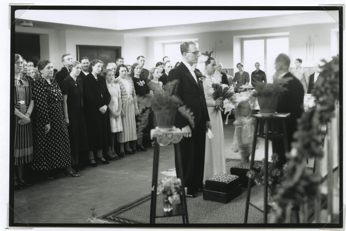 Brudpar med gäster på 1939-07-15.