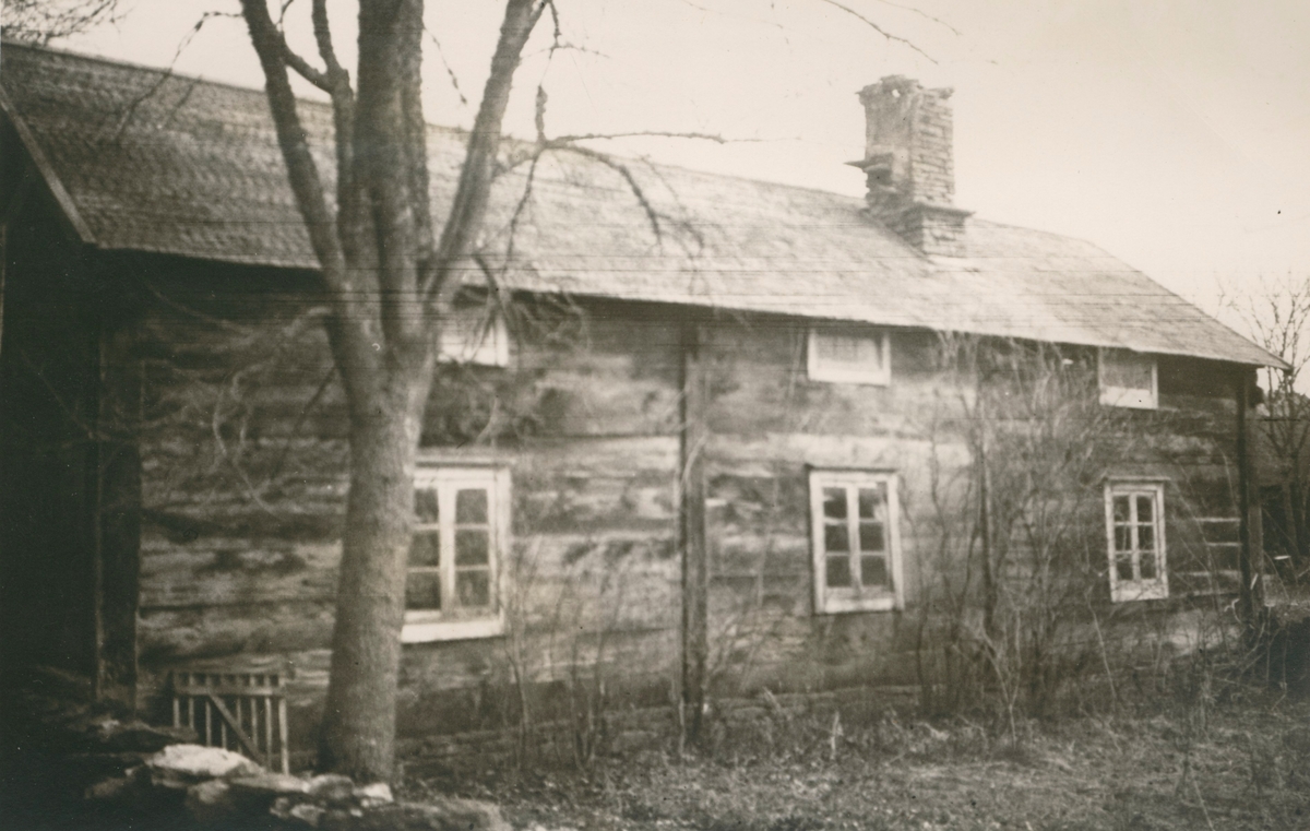 Förfallen parstuga. Ursprungligen byggd som envåningshus vilket syns på placeringen av övre våningens fönster just under takfallet.