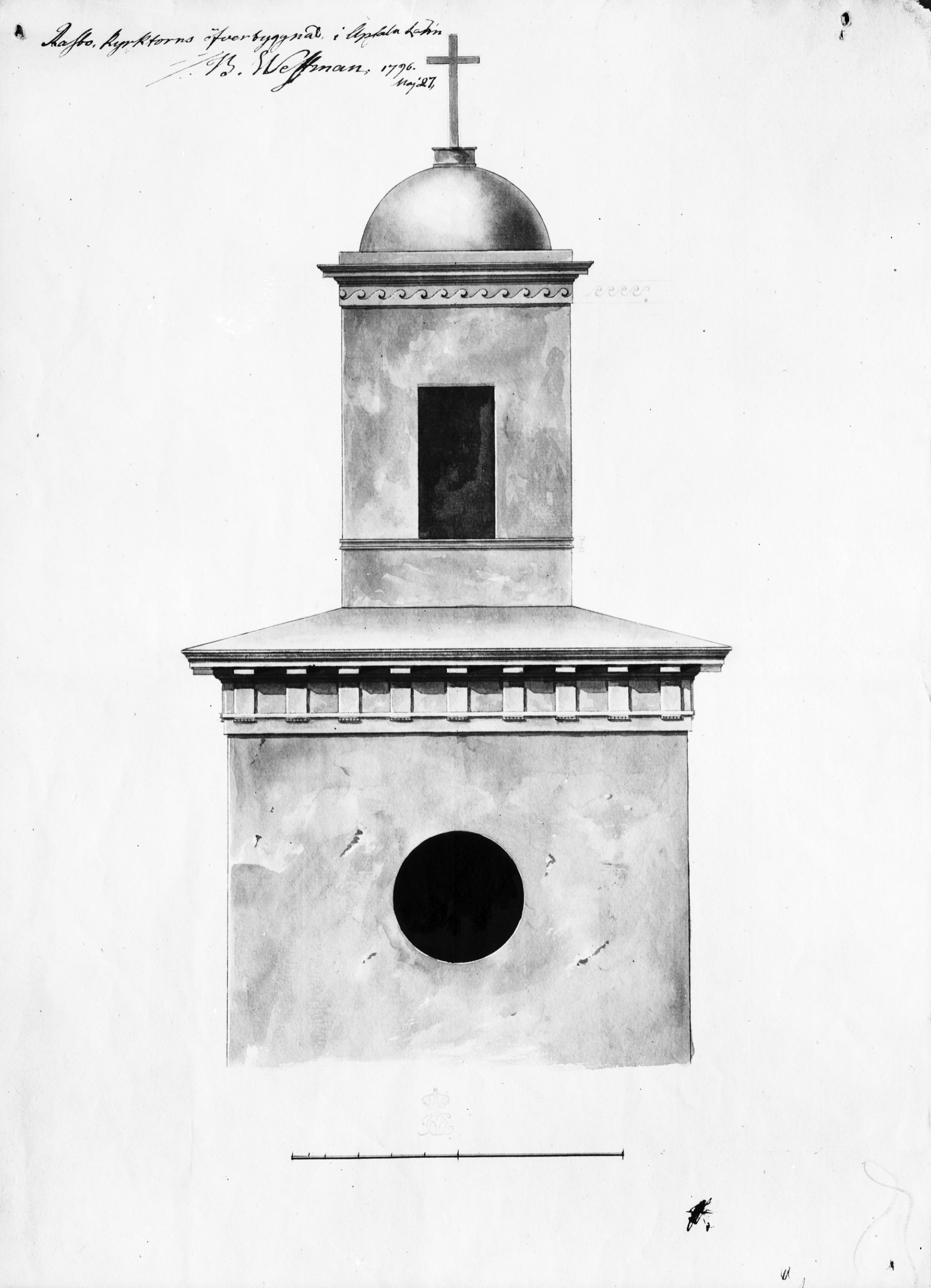 Kyrktornets spets, avfotograferad lavering 1797. Kungliga Byggnadsstyrelsen arkiv.