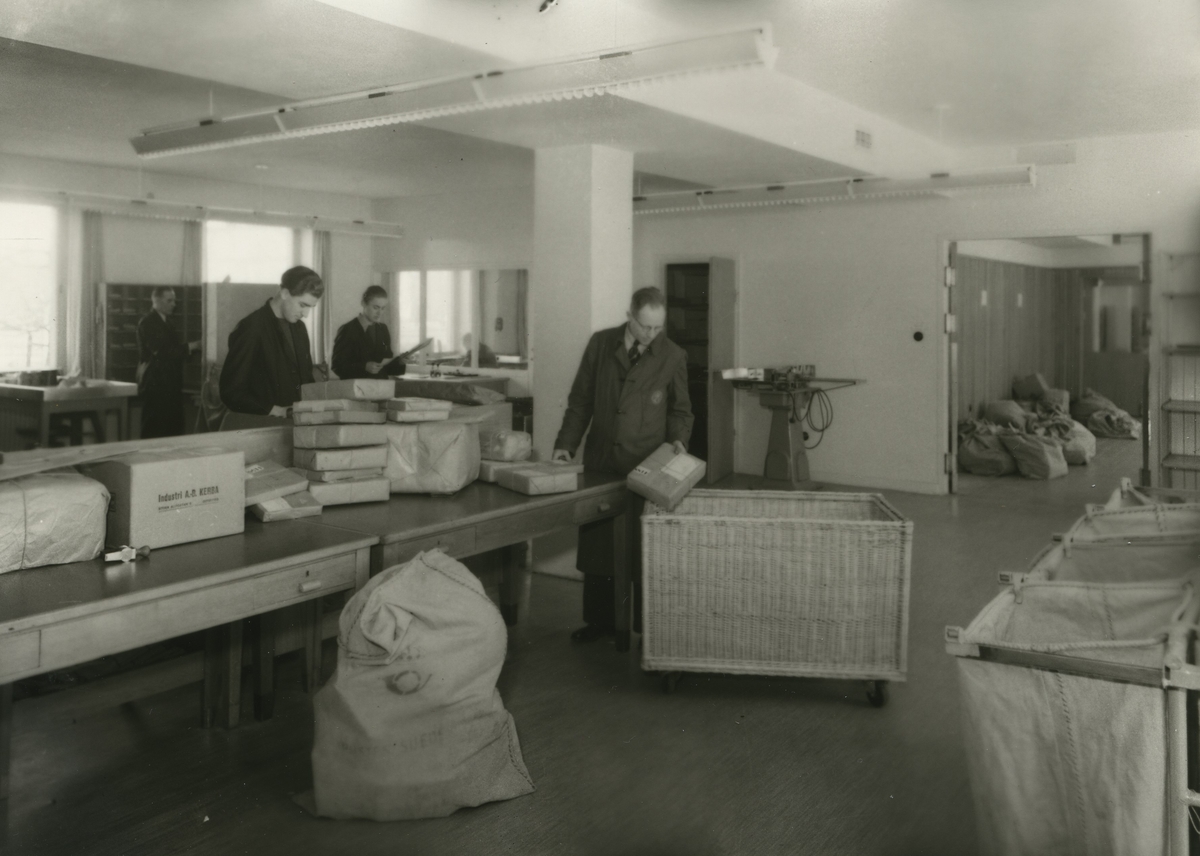 Paketsortering i Kalmars nya posthus vid Sveaplan. År 2022 byggdes huset om till bibliotek sedan det upptäckts att det gamla biblioteket var svårt mögelskadat.