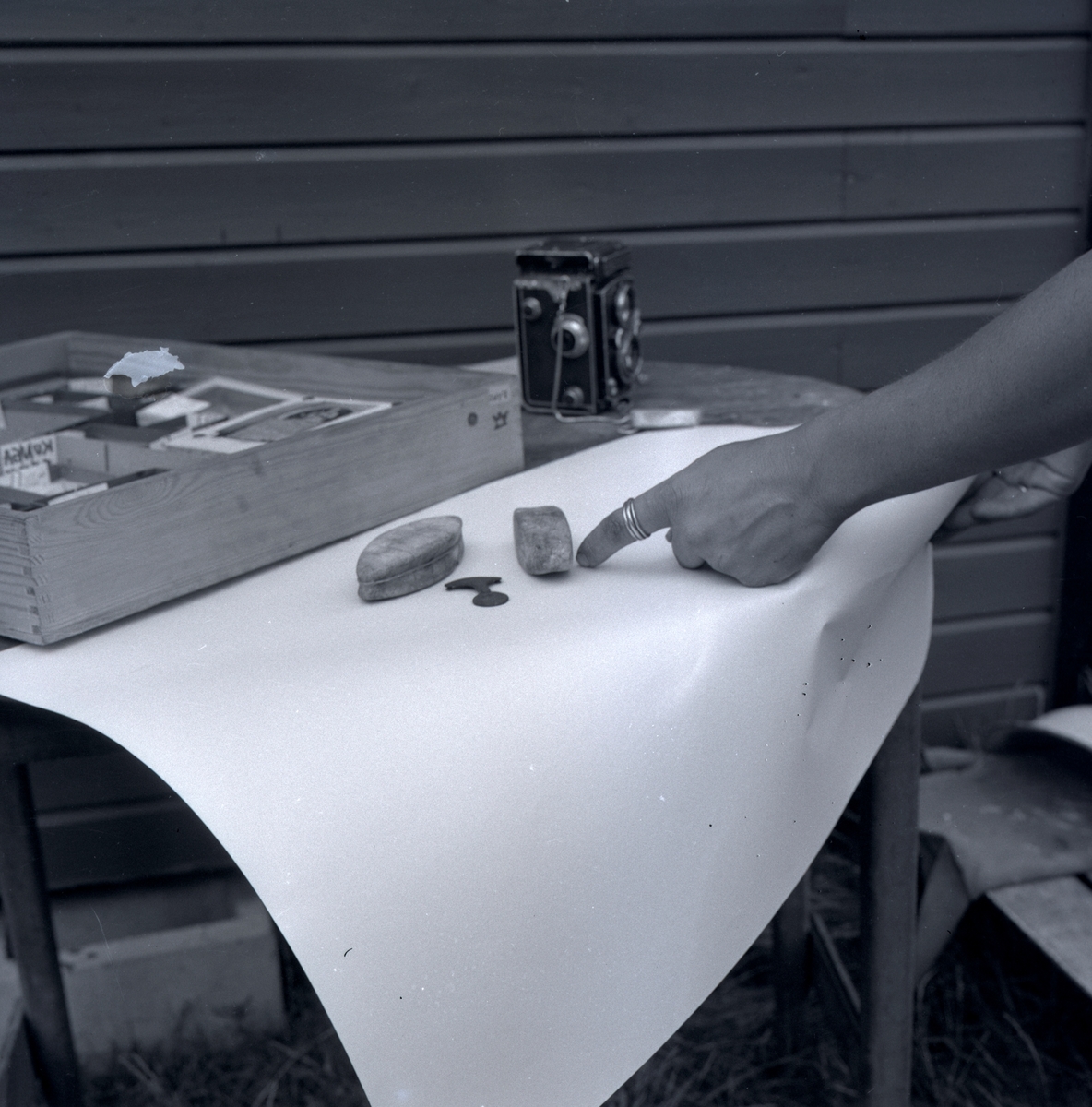 Fynd från Skedemosse, 20/7, bland annat en slipsten.
