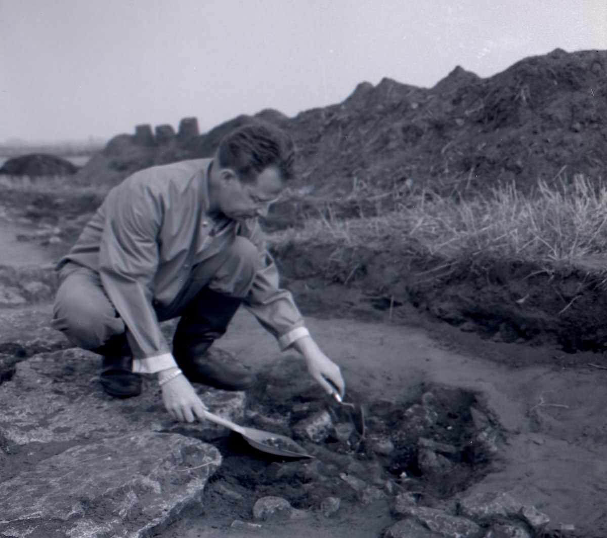 Titel: Från utgrävning i Ormöga 23/9 1963. Man hittade mycket djurbensmaterial i Ormöga och har kunnat konstatera att nötboskap har varit Ormögas viktigaste köttproducent. Jakt och fiske utgorde ett betydelsefullt inslag i befolkningens dagliga livsföring. Grönlandssäl har för första gången påträffats i förhistoriskt benmaterial från Öland.