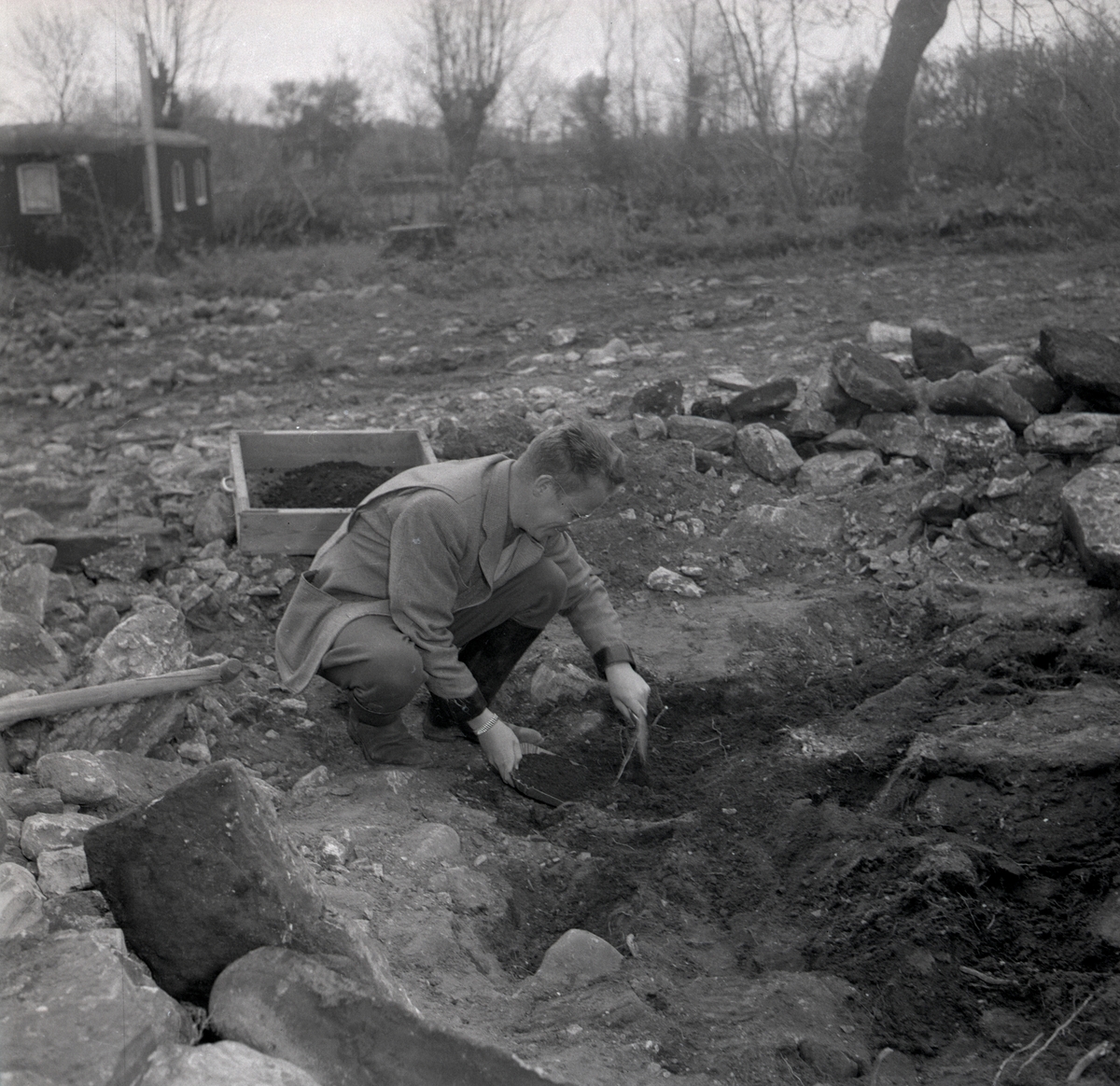 K-G Petersson utför en arkeologisk undersökning vid Klinta 1957.