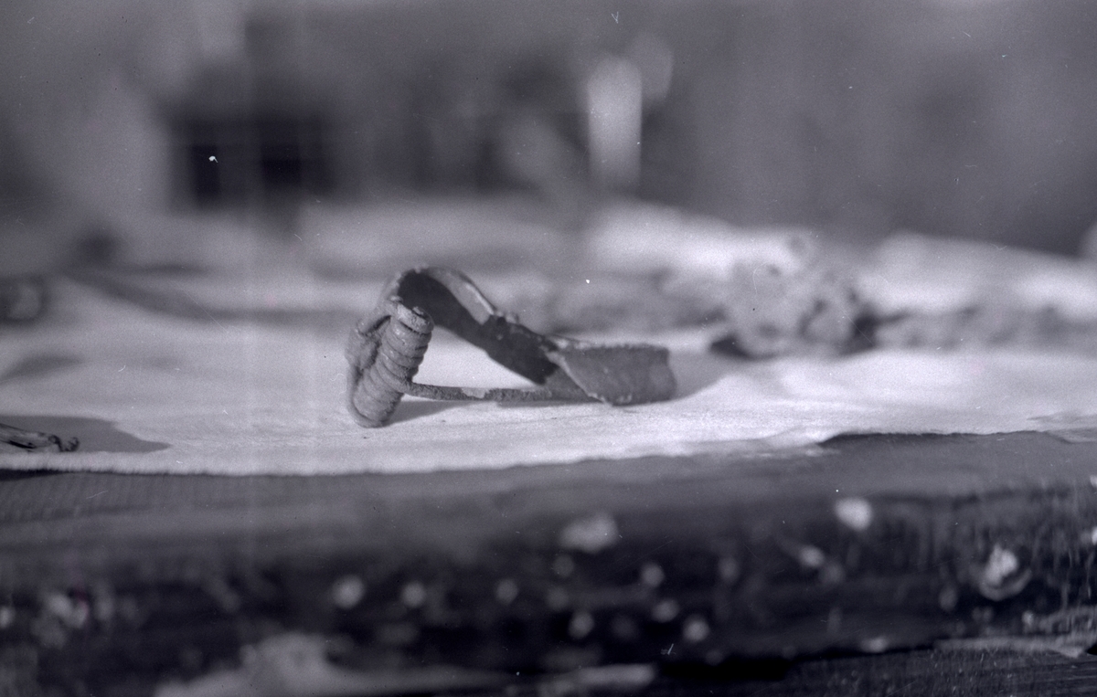 Fynd från Skedemosse 4/11 1964. En fibula är ett dräktspänne. Fibulan användes allmänt i Europa under bronsåldern och järnåldern.