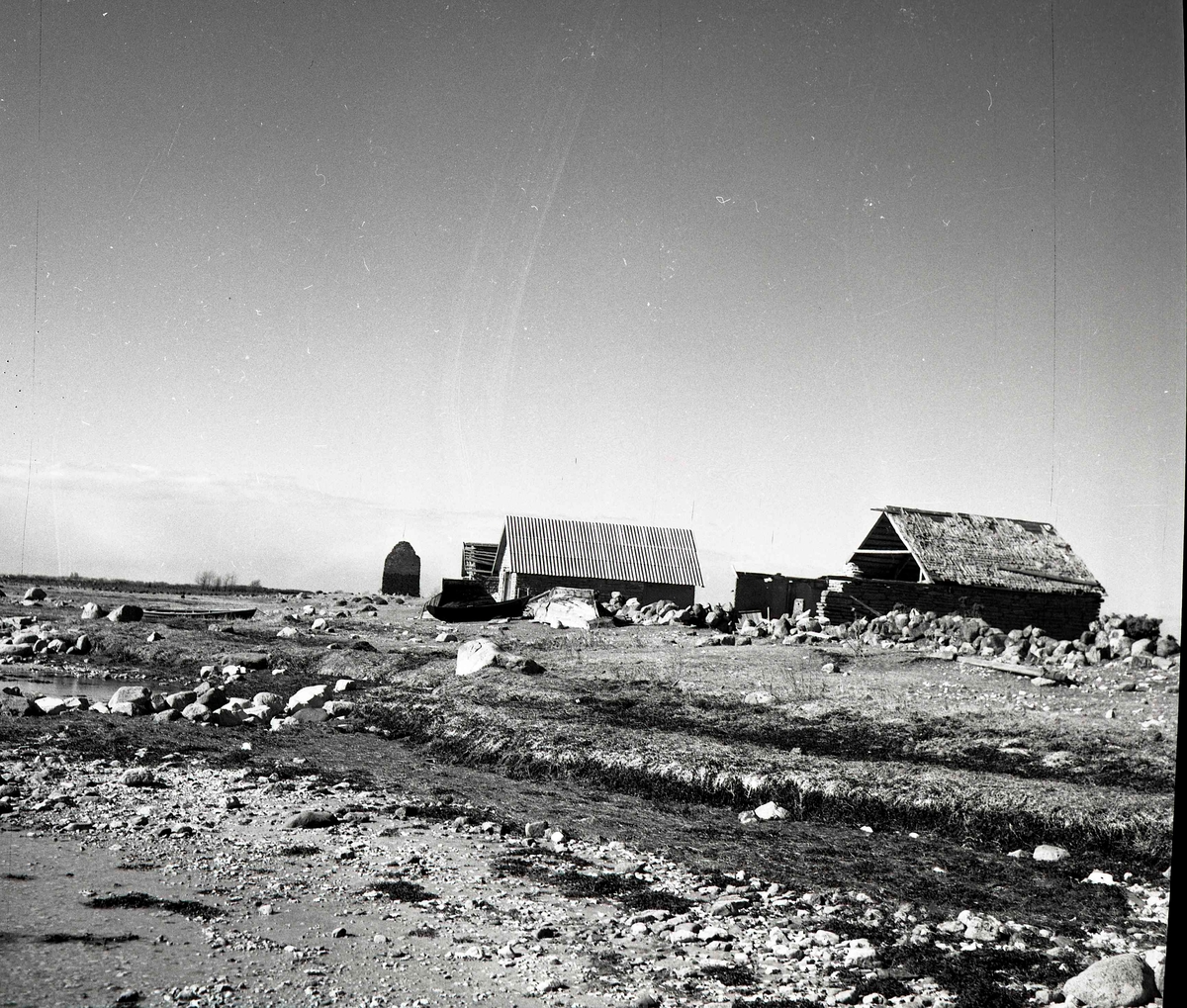 På sydspetesen av Hallnäs udde finns fem sjöbodar, varav den längst i söder är uppförd av kalksten och trä. I anslutning till de befintliga bodarna finns flera äldre sjöbodtomter idag omgivna av stenbundna jordvallar. Strax norr om bodarna, i de betade sjömarkerna, står ett sjömärke av kalksten, sju meter högt, med smalare, rundad överdel. Det till storleken imponerande byggnadsverket uppfördes 1868 och kallas av lokalbefolkningen för "Hallnäskärringen". Strax söder om udden finns Hallnäs läge, platsen för en tidigare hamn, som är övergiven sedan 1800-talet.